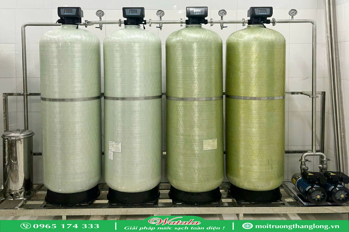 Đẩy nước thô đi qua các cột lọc đa tầng, than hoạt tính, làm mềm nước… |
